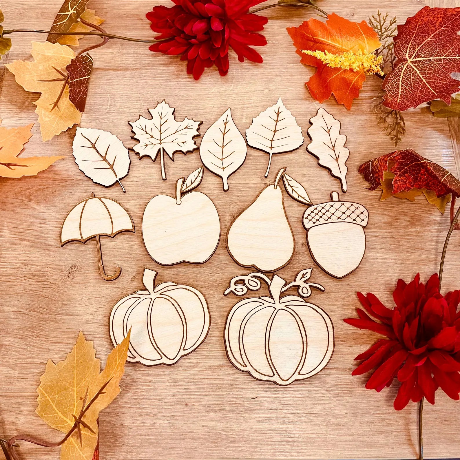 Sett stemningen for høsten med denne flotte pakken med dekorative høstmotiver i tre. Perfekte til å male, bruke som bordpynt, henge opp eller kombinere i kreative hobbyprosjekter.
