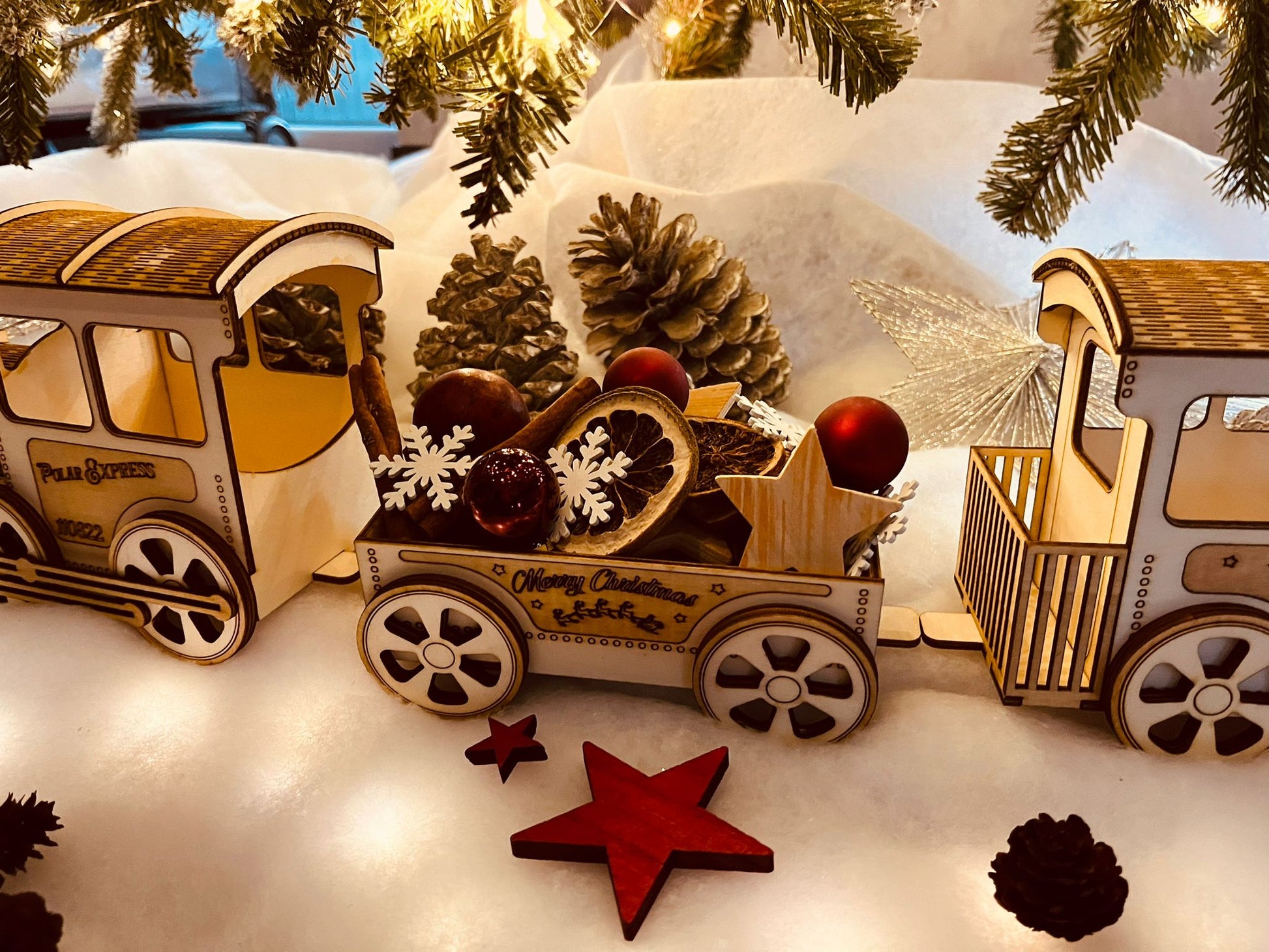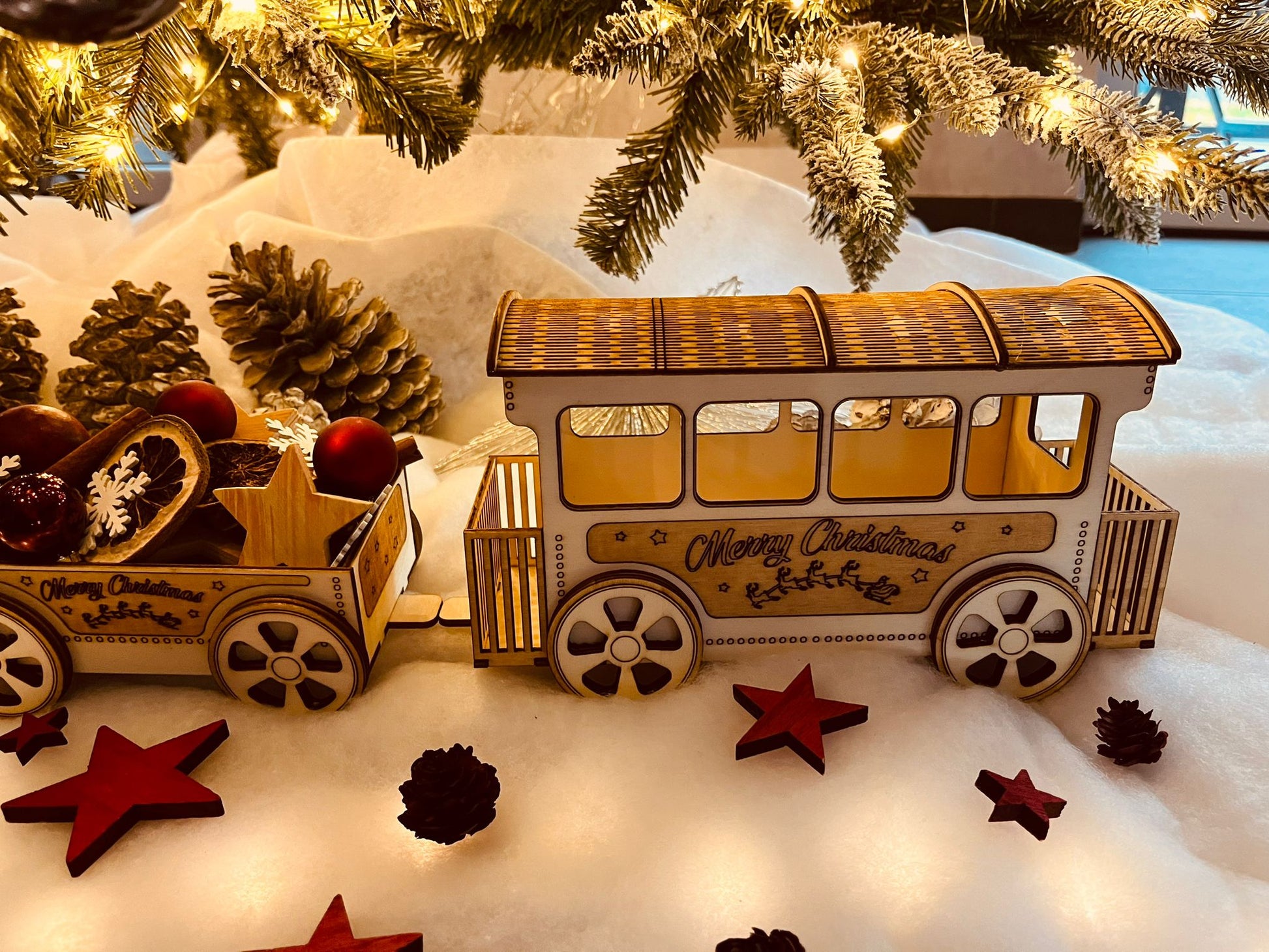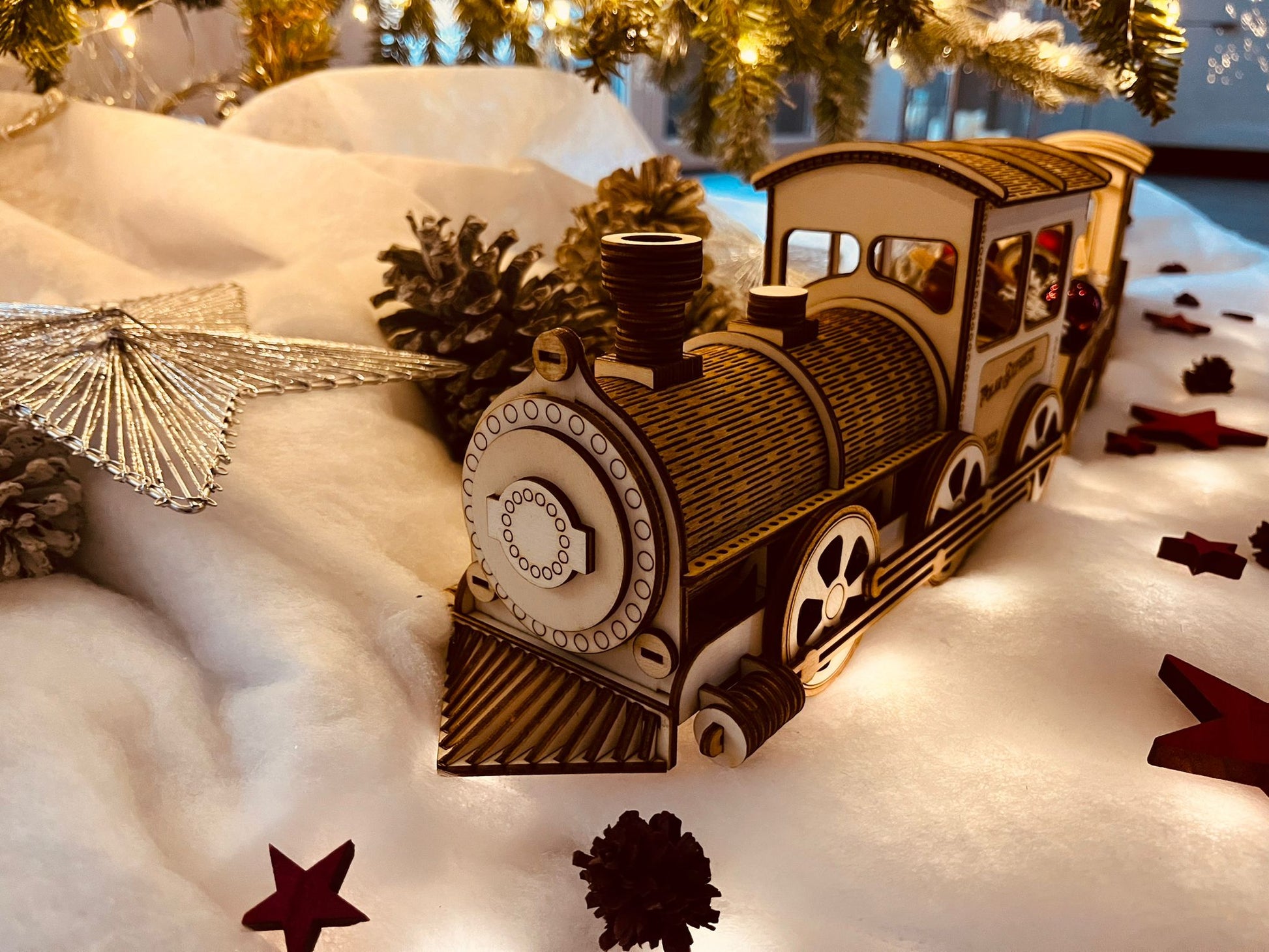 Skap magisk julestemning med dette nydelige dekorasjons toget i tre. Perfekt til å pynte i vinduskarmen, på spisebordet eller under juletreet.