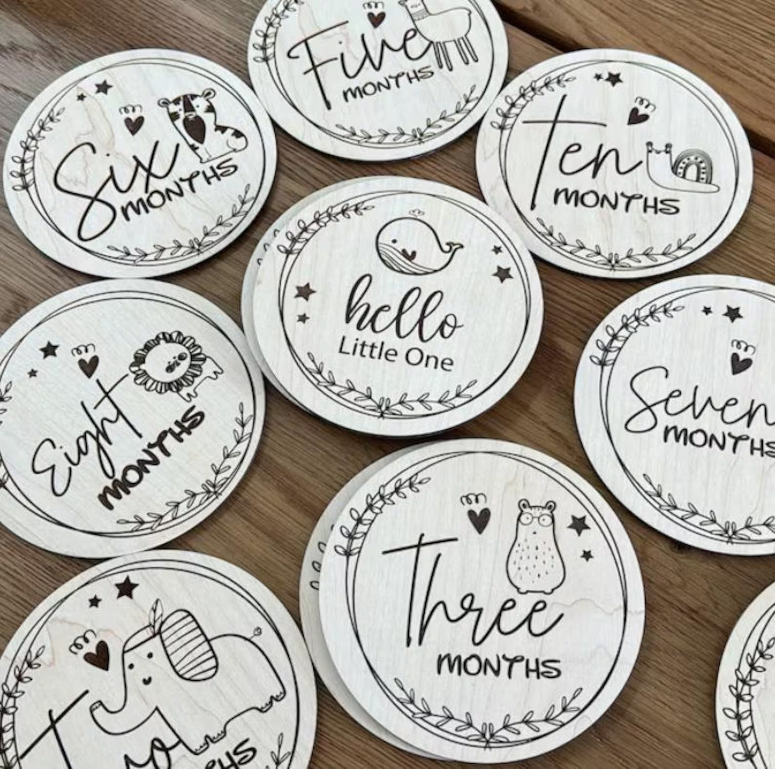 Bevar minnene fra barnets første år med disse nydelige milepælskortene i tre. Perfekt til fotografering, babyalbum og som dekor på barnerommet.