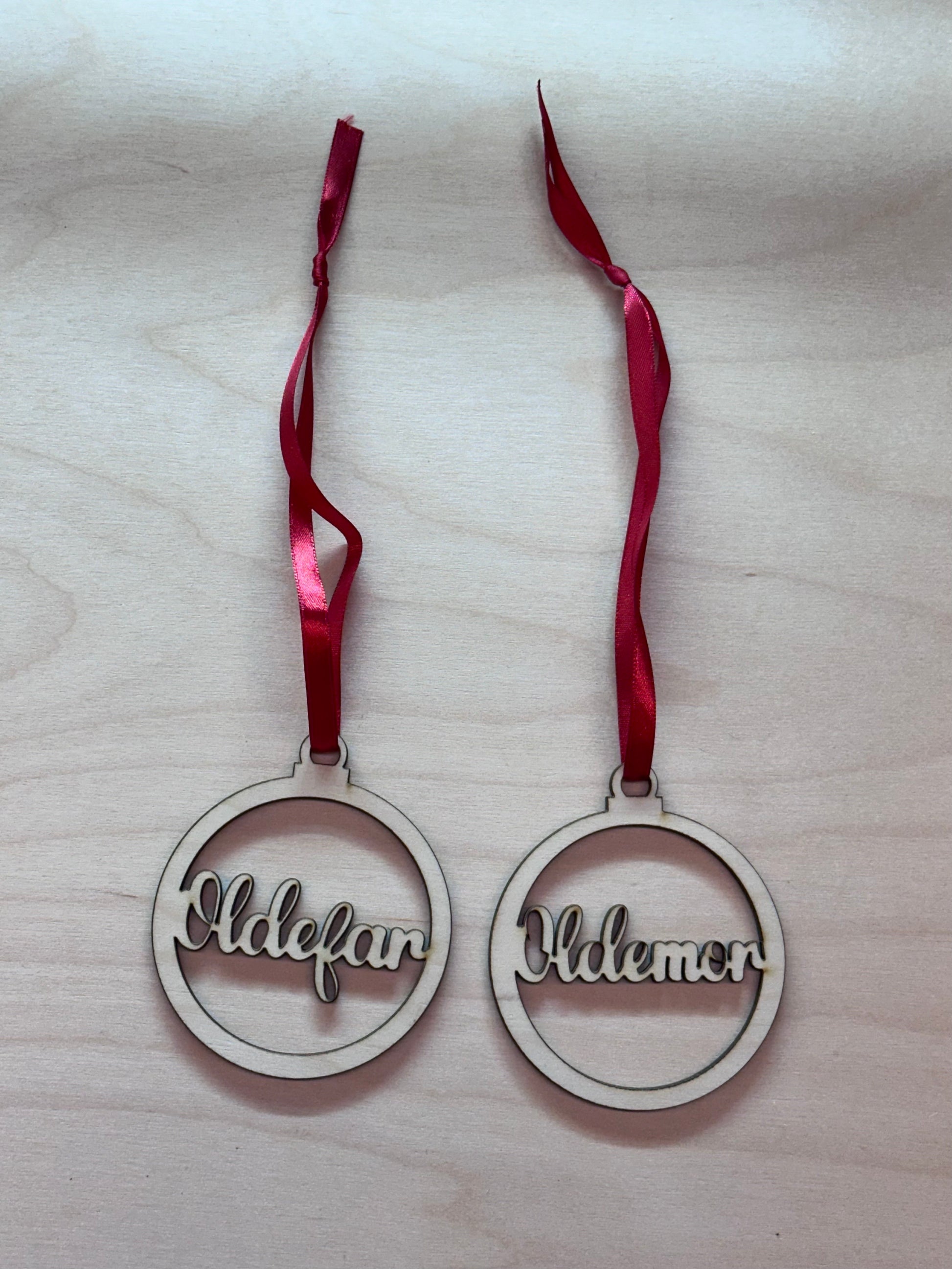Gjør juletreet personlig med vår populære julepynt i tre – velg mellom Oldemor, Oldefar eller begge som sett.