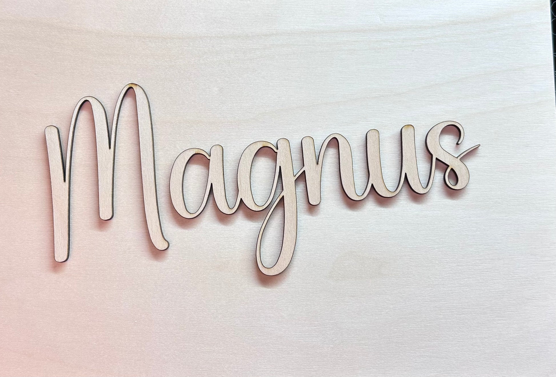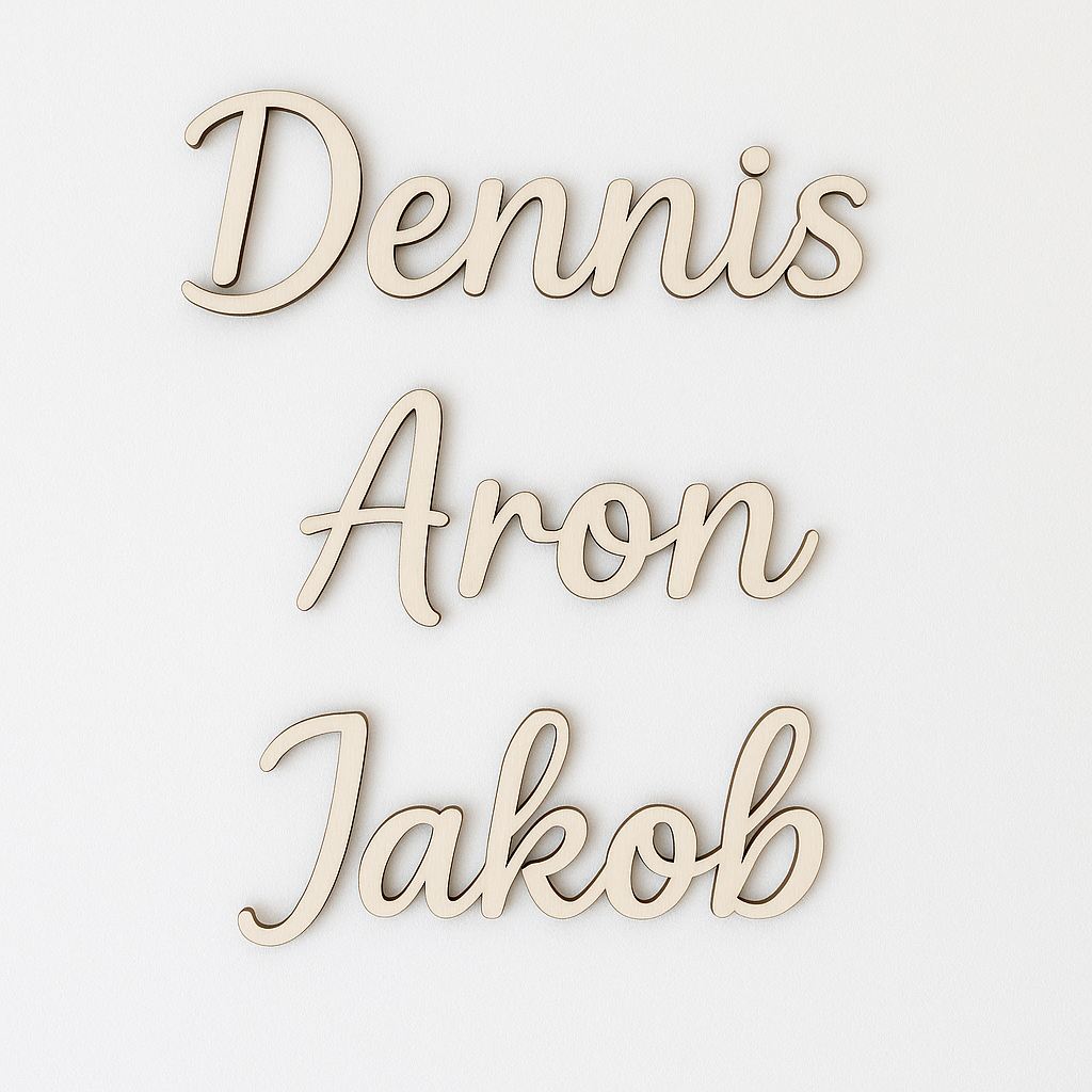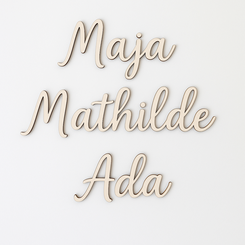 Du velger selv navnet, og vi lager et vakkert skilt i tre - perfekt til barnerommet, døren, som gave eller dekor i hjemmet.
