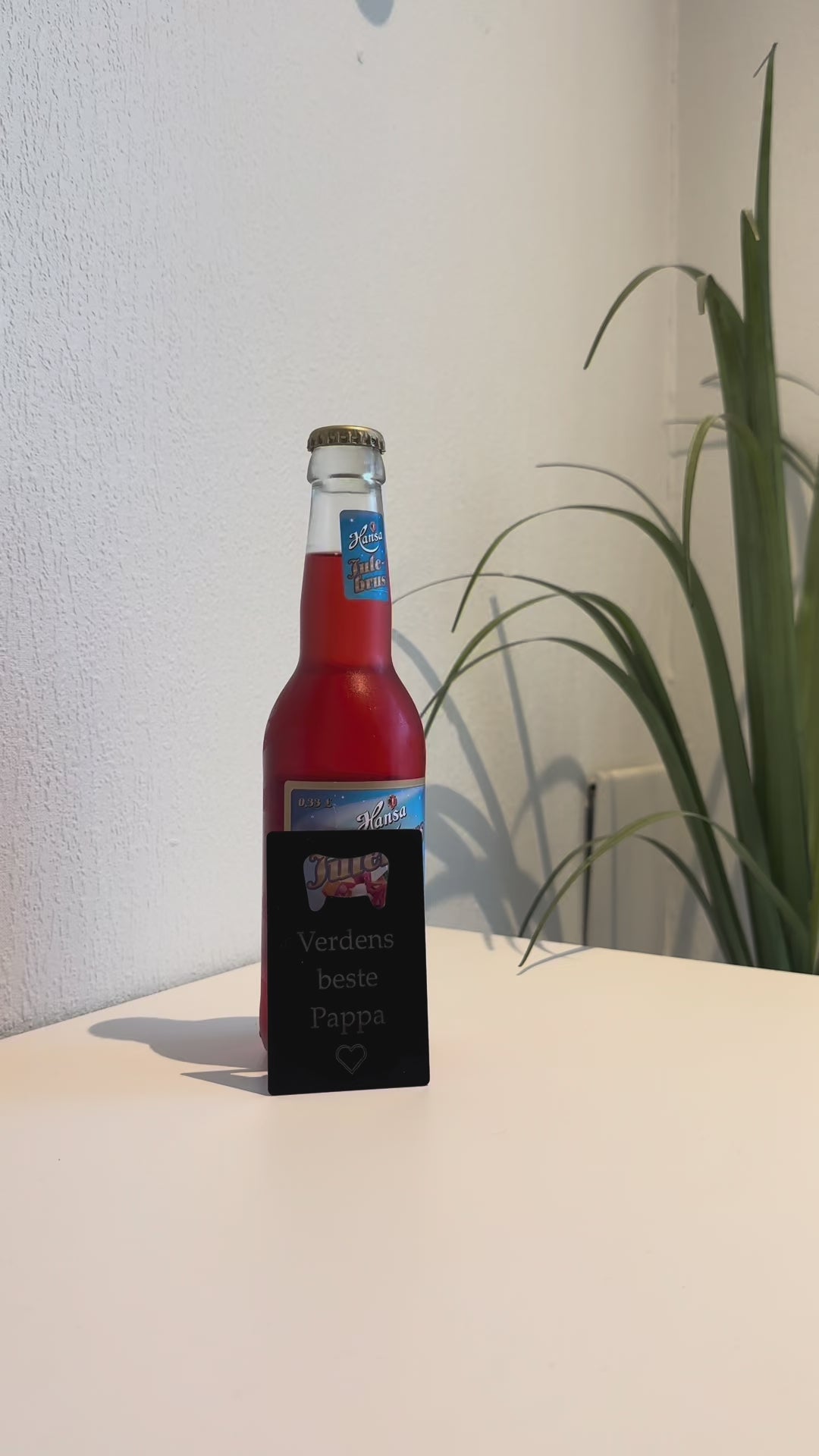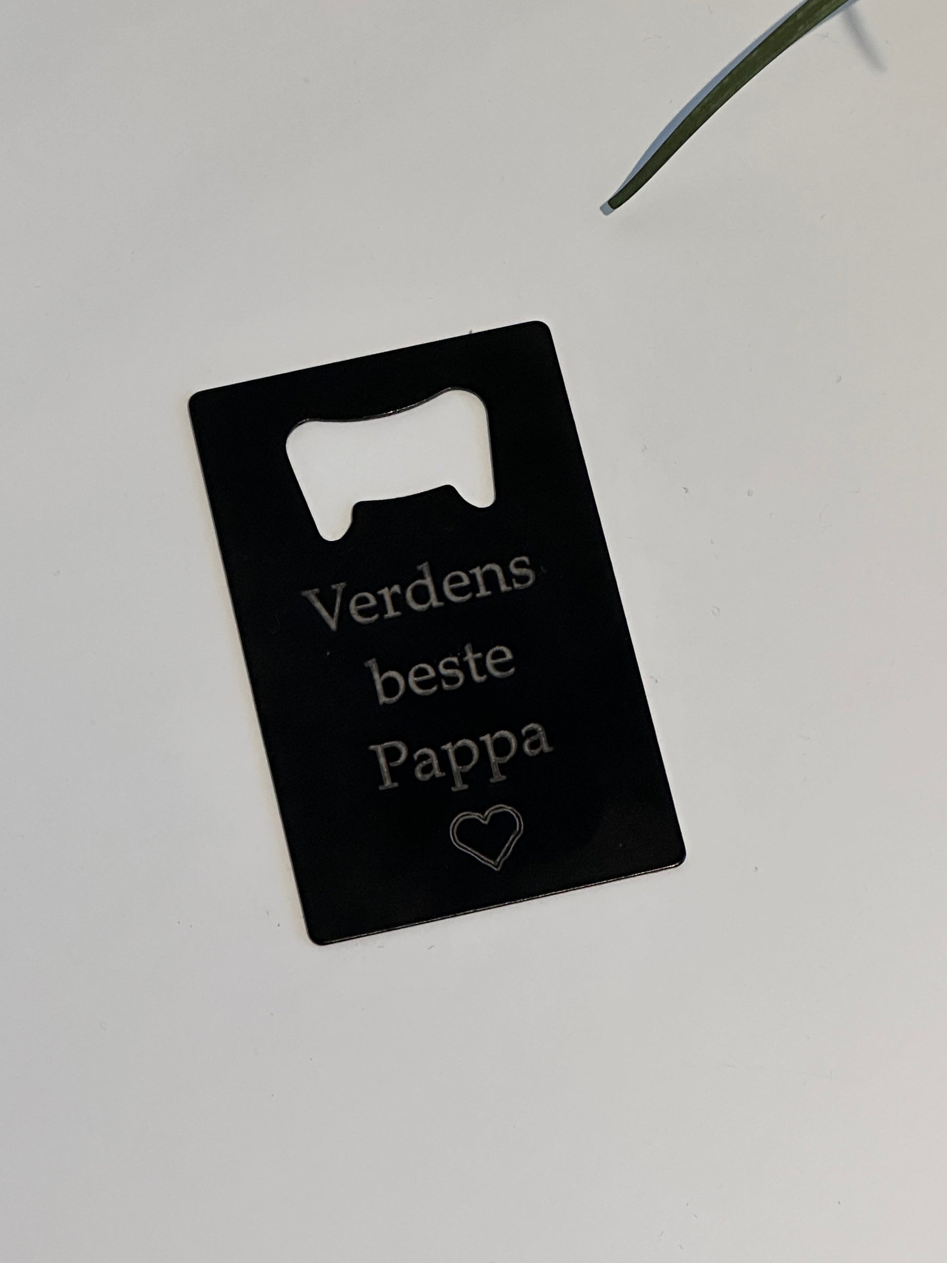 Denne stilrene flaskeåpneren i metall passer perfekt i lommeboken, verktøykassen eller hanskerommet – alltid klar når pappa fortjener en velfortjent forfriskning.
